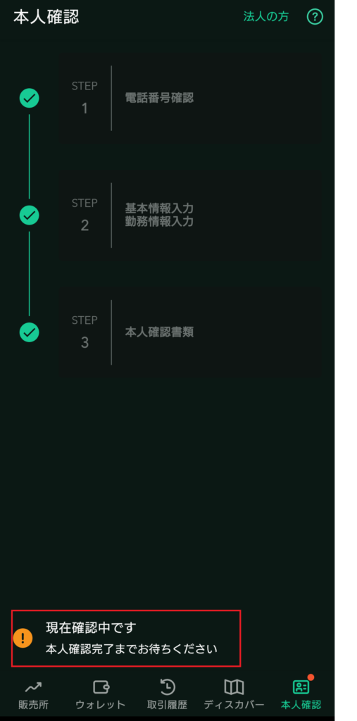 - 本人確認書類提出(顔と本人確認書類の撮影)